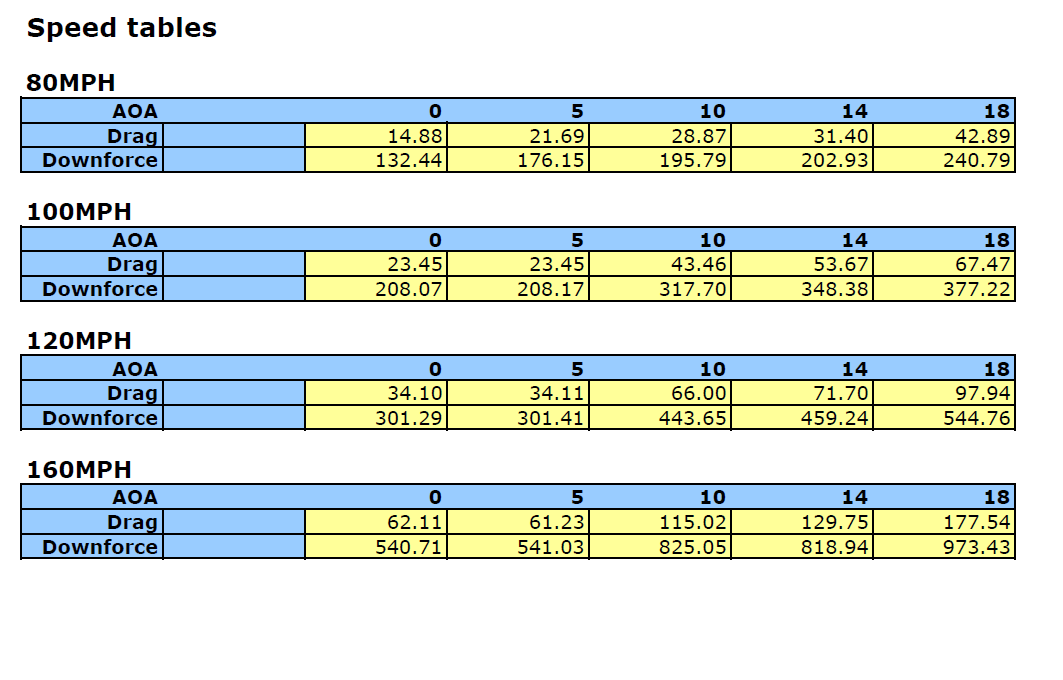 4. Downforce and Drag Characteristics: