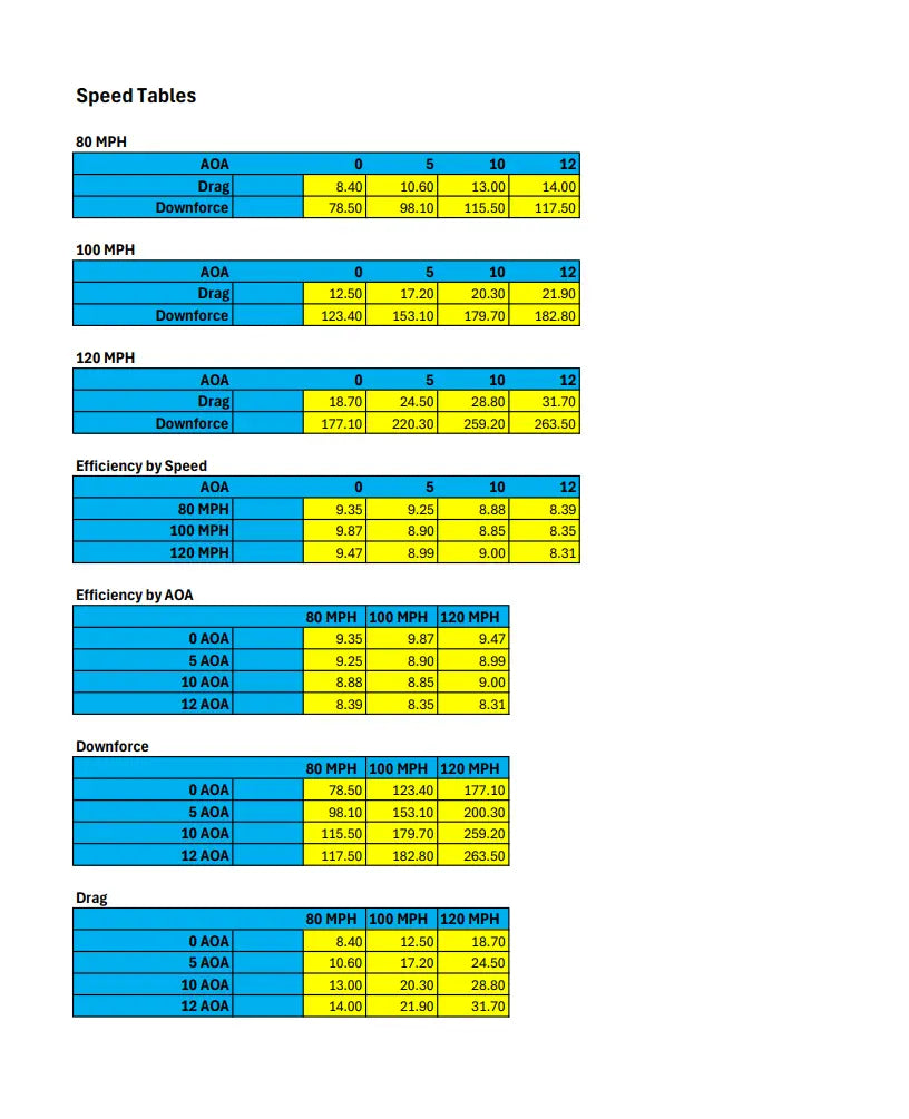 Downforce and Drag Characteristics: