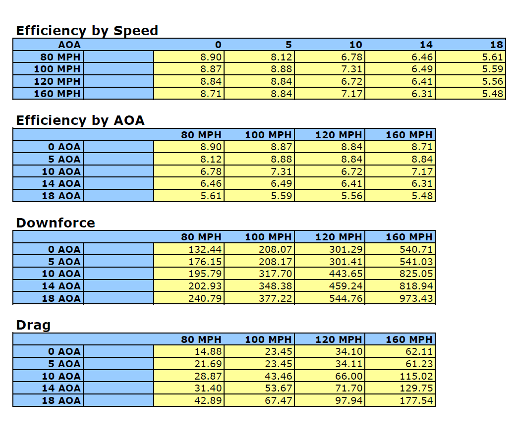 4. Downforce and Drag Characteristics: